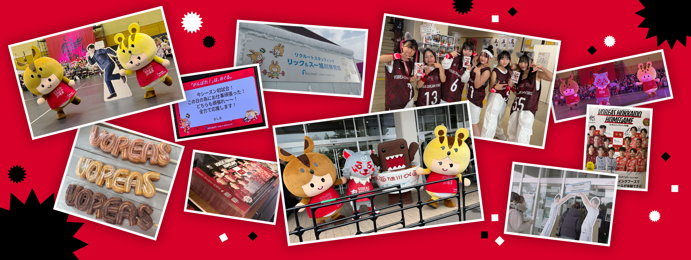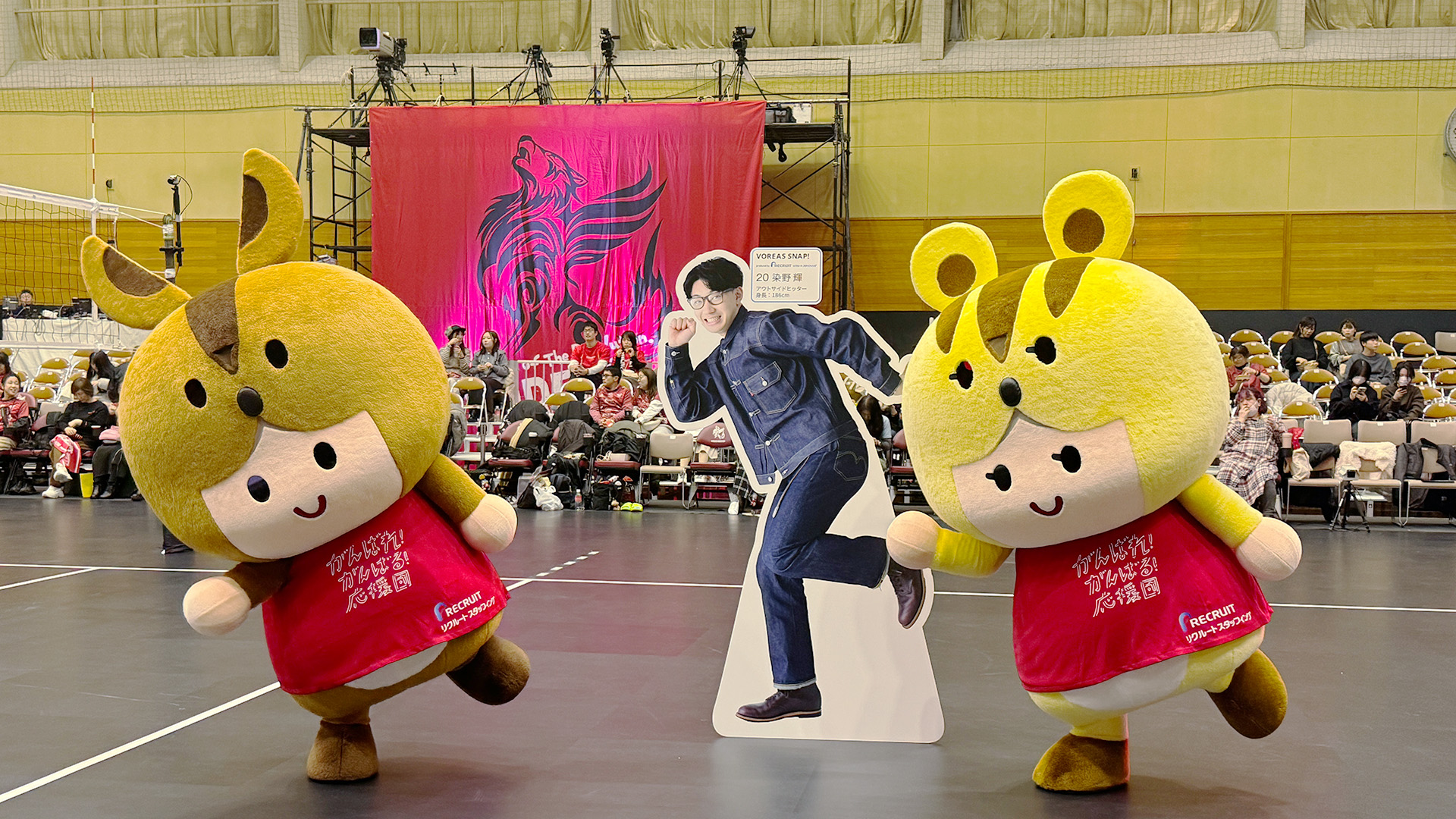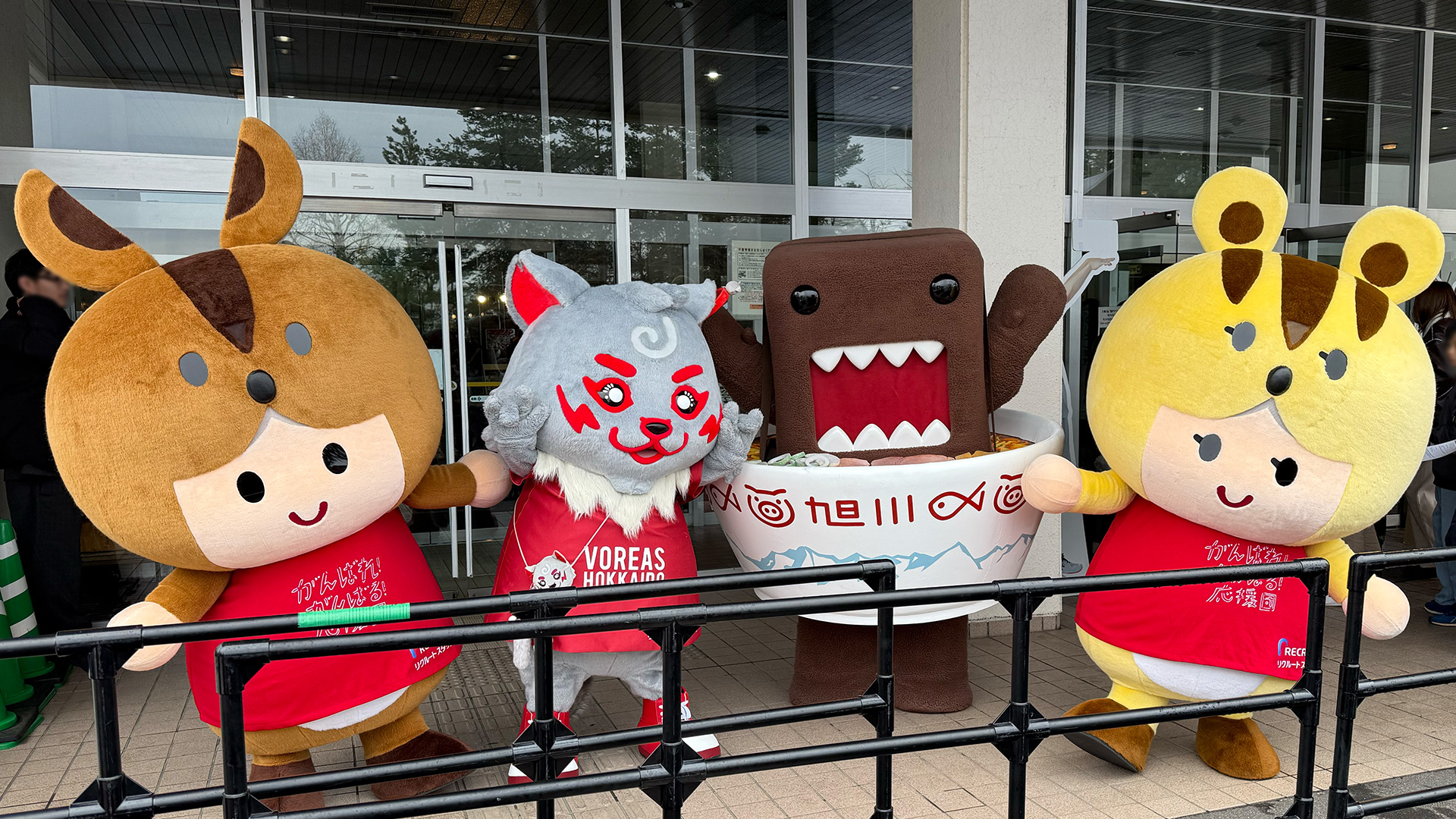 ヴォレアス北海道のマスコットキャラクター「ヴォレ」と「旭川ご当地ラーメンどーもくん」と一緒に、「リック」と「スー」もお出迎えをしました!