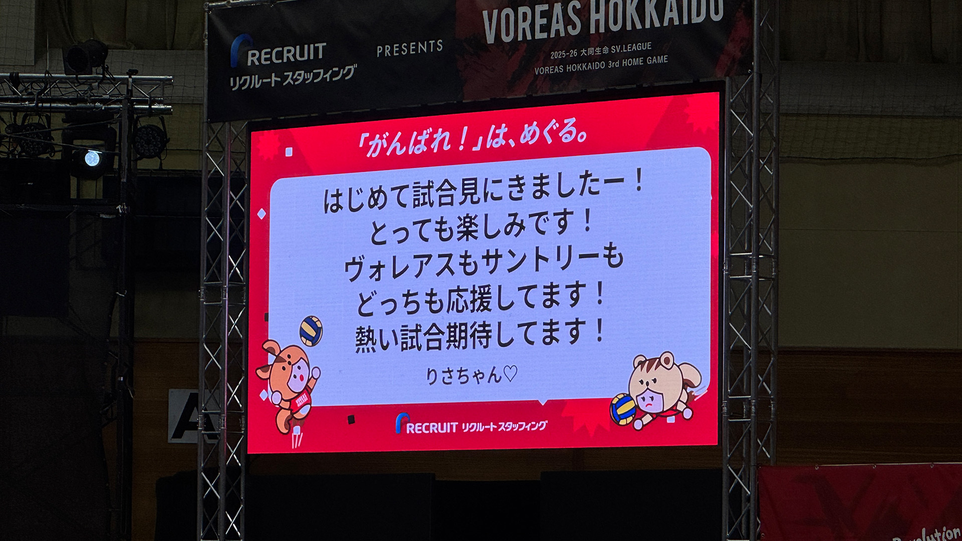 会場では、両チームに向けて、ファンのみなさんから届いたメッセージが投影されました!