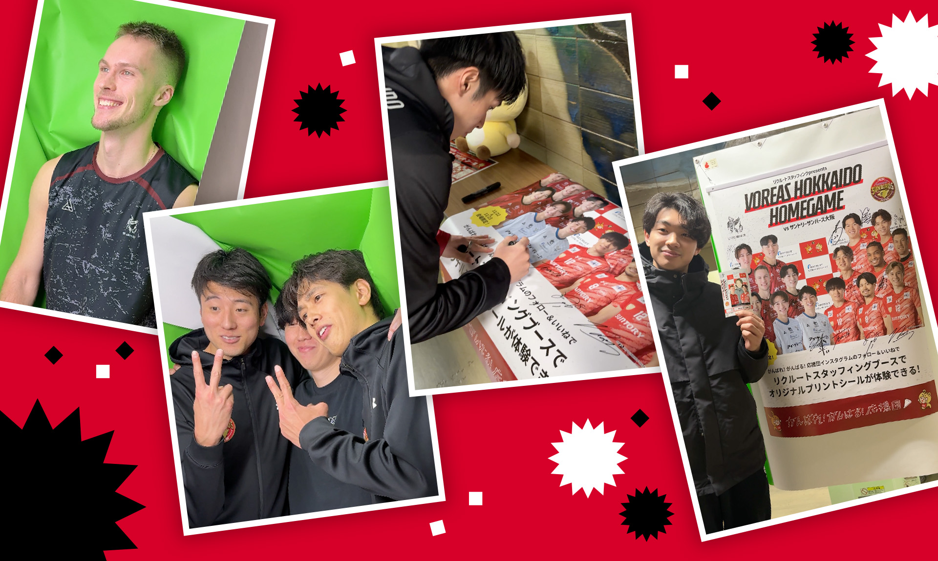 リクルートスタッフィングブースでは、ヴォレアス北海道とサントリーサンバーズ大阪の選手のオリジナルプリントシールが撮れる会場限定キャンペーンを行いました。
